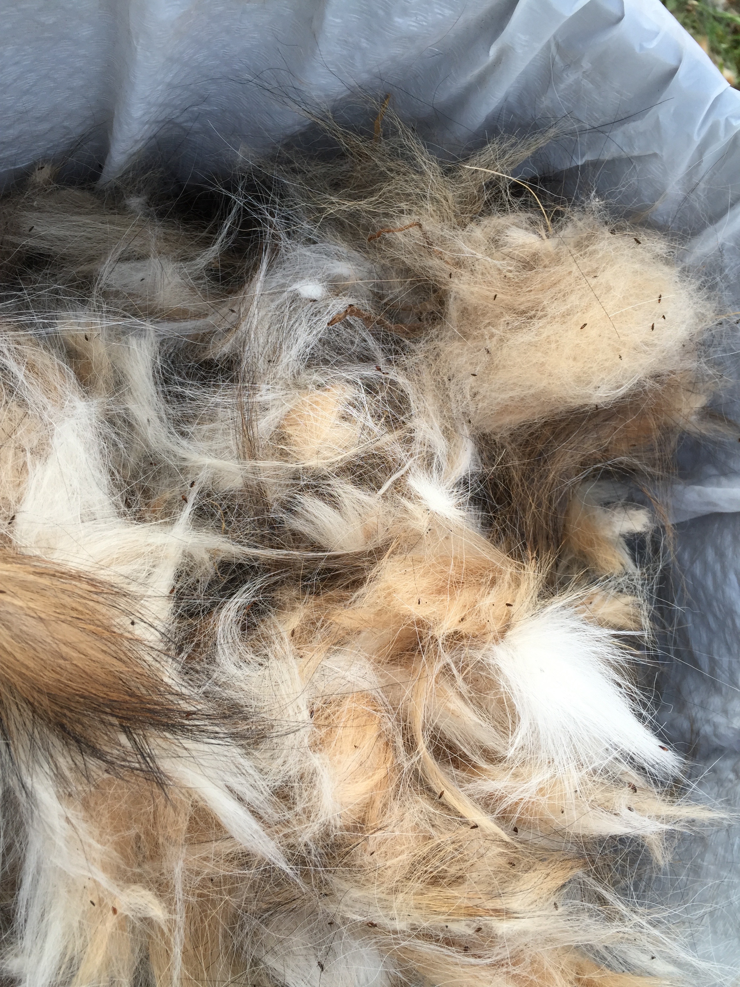 And try as I might to get rid of them — pills, drops, baths, brushing — the little bastards wouldn’t budge. So off comes her hair.