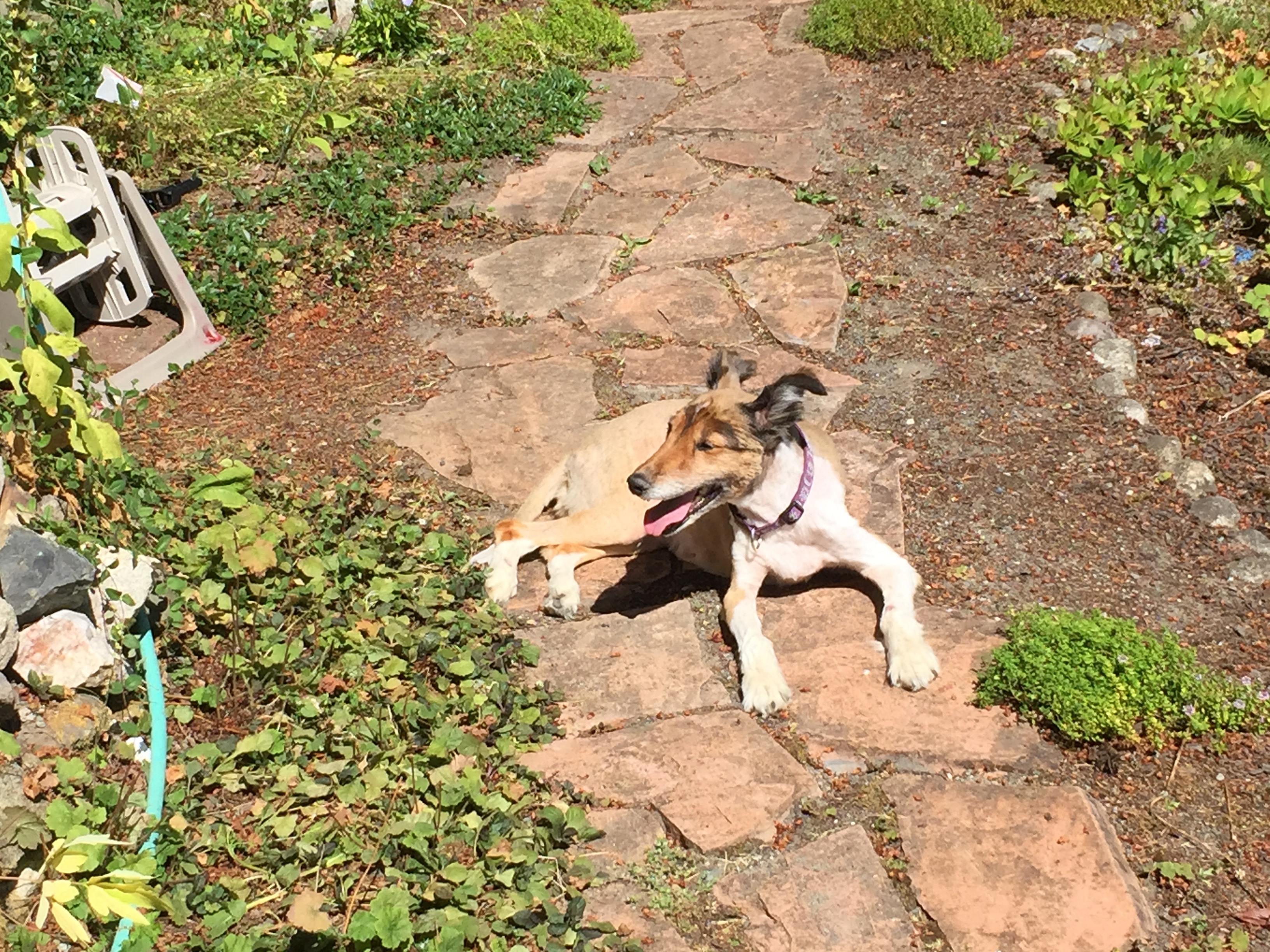 Ready to hit the road up to Whidbey. She likes to ride in the car but this ride wears her out pretty quickly. She did fit better on the seat without so much hair!