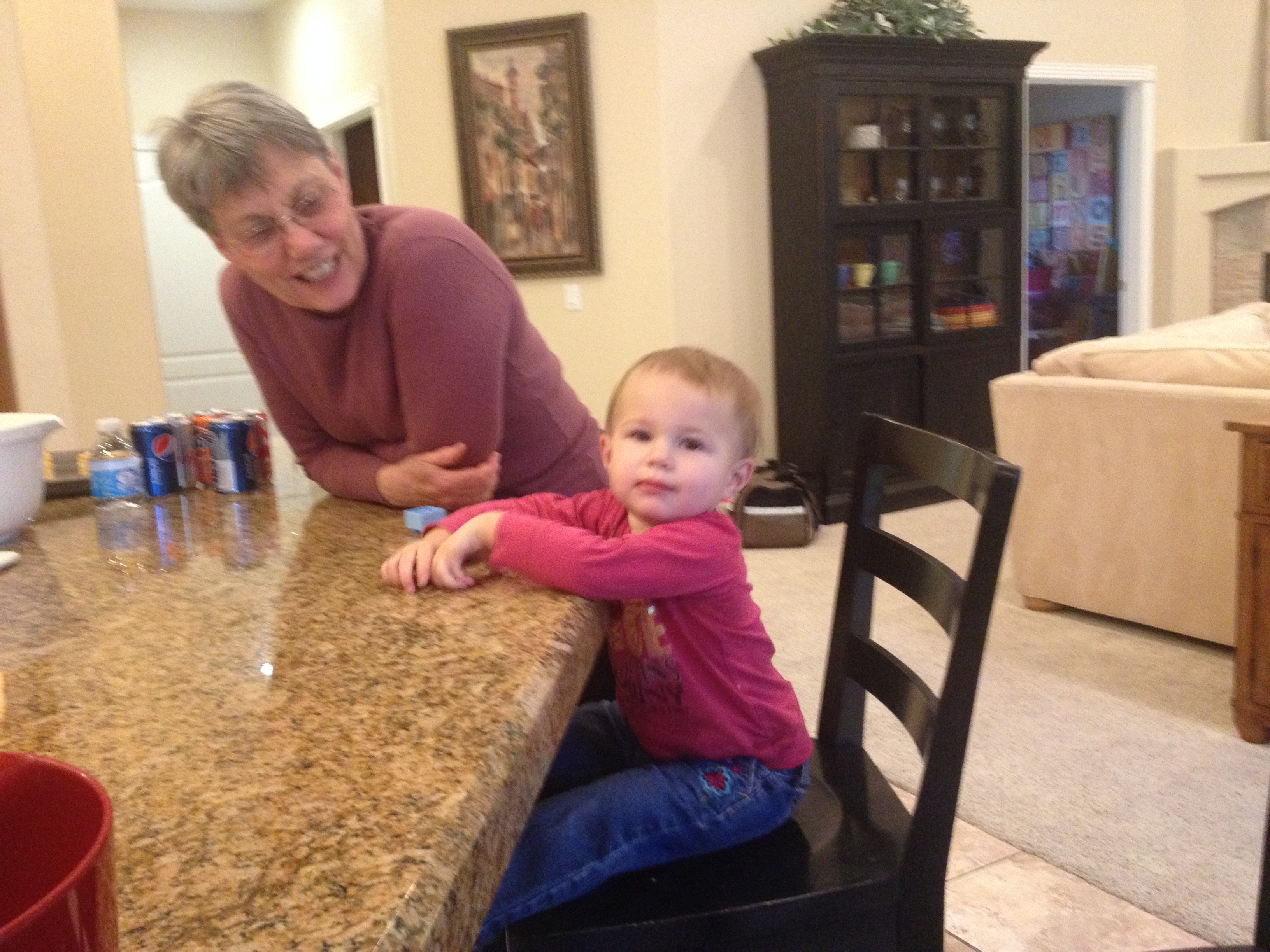 Vivi likes to sit at the tall counter stools. She’s just chillin’ with Grandma.