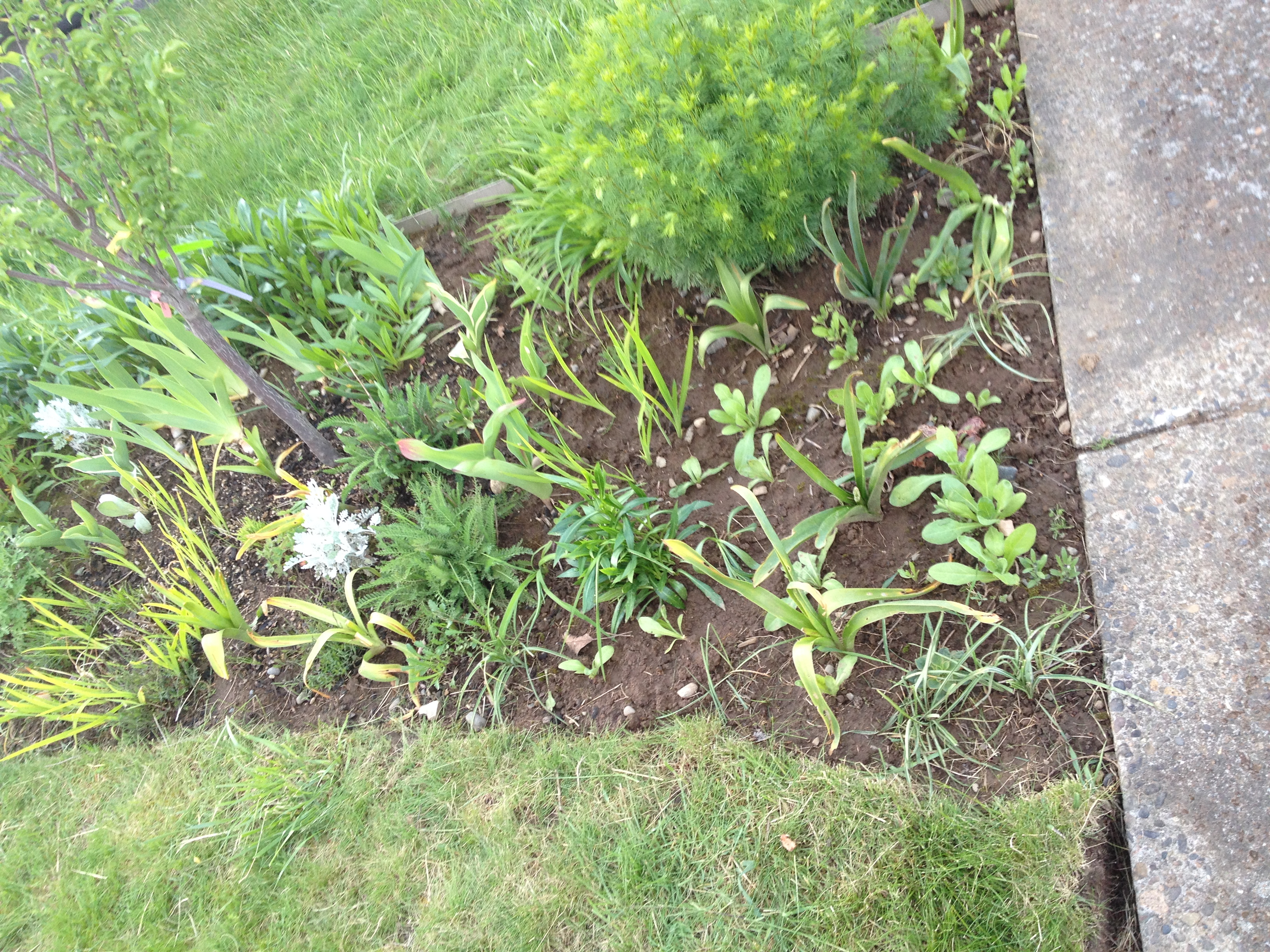 Fixtures are doing fine but I need to move some things around that came up from seed and then fill the holes.