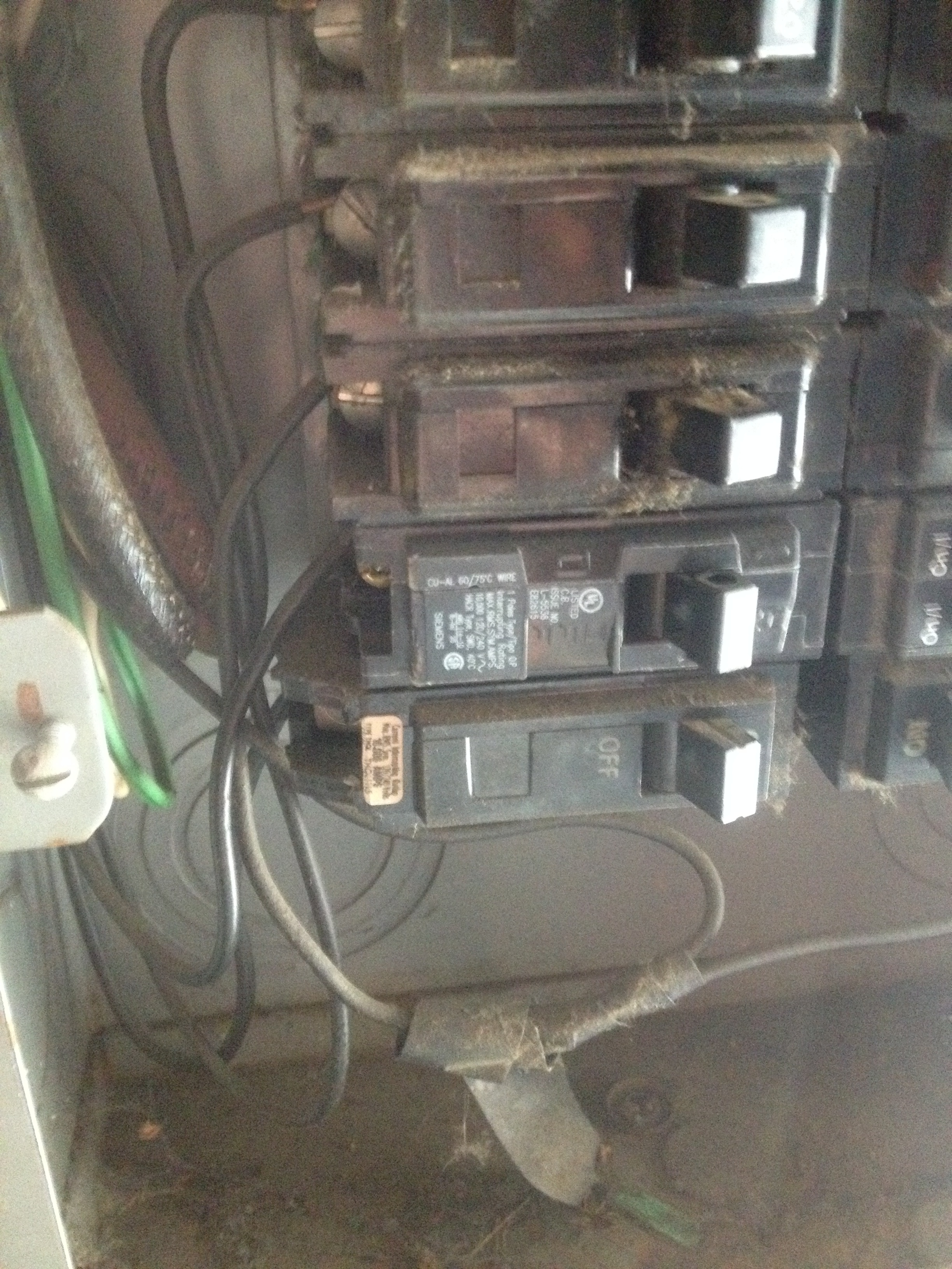 The braker box — sent this to Dad to see if I was smart enough to replace what I thought was a blown breaker — turns out, not blown, just some dumb wiring on kitchen switches.